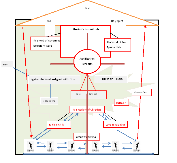 1. God rules the world in a twofold way. The Spiritual and Earthly. This earthly government serves to preserve external secular righteousness. The Spiritual Government help men to achieve true Christian righteousness and therewith eternal life.