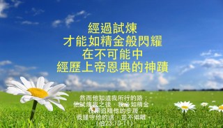 而我們都是在神榮耀福音作為中領受恩典的人,沒有例外,別認為自己夠好,配得現在的一切,也別認為別人不夠好,不該得現在的一切,陷入比較的漩渦,被忿忿不平捆鎖,失去盼望的喜樂,神是護衛我們的城牆,若離了神,就沒有了保護,光憑自己再怎麼努力奮戰,能維持多久?人會在血氣中任性,但神在祂的愛中不會任憑我們走向毀滅,時候到了,神要出手介入,我們就知道是神的揀選與差遣。
