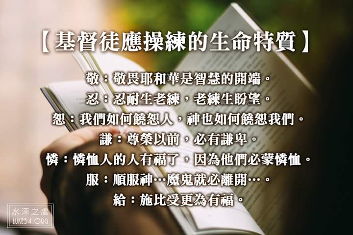 主阿,願祢在祝福的事上是我們的主,在提醒管教的事上也是我們的主。讓我們不只是想要從祢那裡領受豐盛滿滿的恩福,也幫助我們在我們不想要的困苦艱難裡,順服從祢而來的塑造、破碎、更新、改變、長進的恩典。主阿,我們屬於祢,祢在我們生命有主權,為要傳揚福音,求祢先讓福音充滿、活化在我們的生活每個角落。讓我們知道我們所傳的福音,正是祢此時此刻在我們生命裏的故事。