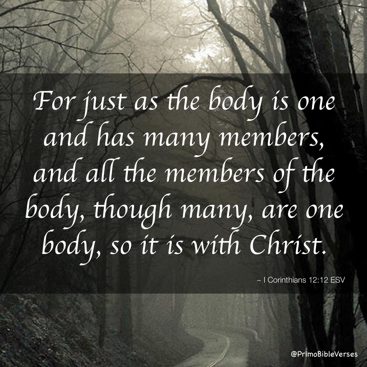 眼不能對手說:我用不著你。頭也不能對腳說:我用不著你。但神配搭這身子,把加倍的體面給那有缺欠的肢體。免得身上分門別類。總要肢體彼此相顧。若一個肢體受苦,所有的肢體就一同受苦,若一個肢體得榮耀,所有的肢體就一同快樂。你們就是基督的身子,並且各自做肢體。神在教會設立的,豈都是使徒嗎?豈都是先知嗎?豈都是教師嗎?你們要切切地求那更大的恩賜。