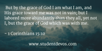 弟兄們,你們若不是徒然相信,能以持守我所傳給你們的,就必因這福音得救。就是基督照聖經所說,為我們的罪死了,埋葬了,第三天復活了。且顯給磯法看,然後顯給十二使徒看,後來一時顯給五百多弟兄看,以後,顯給雅各看,再顯給眾使徒看。末了也顯給我(保羅)看。我從前原是逼迫教會的,然而,我今日成了何等的人,是蒙神的恩才成的,並且他所賜我的恩不是徒然的。我比眾使徒格外勞苦,是神的恩與我同在。我們如此傳,你們也如此信了。