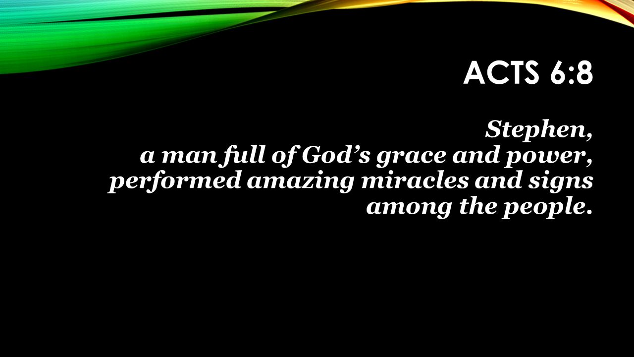 神藉司提反在眾人中行奇妙的事。辯論不能阻止神的工作,假見證無法扭曲神的真實,群眾的壓力沒有改變司提反如天使般臉上的面貌。辯論終究要停止,但神的工作會一直持續到底,假見證終究會顯露,但神的真實不會一直被隱藏,群眾的聚集終要散去,但生命光輝所帶來的亮度與溫度,會持續成為帶來改變的力量。表面上看來,辯論、假見證與群眾的聲勢,鋪天蓋地的臨到司提反身上,實際上卻讓神的作為更加凸顯,神的真實更為彰顯,神的榮光更為鮮明。