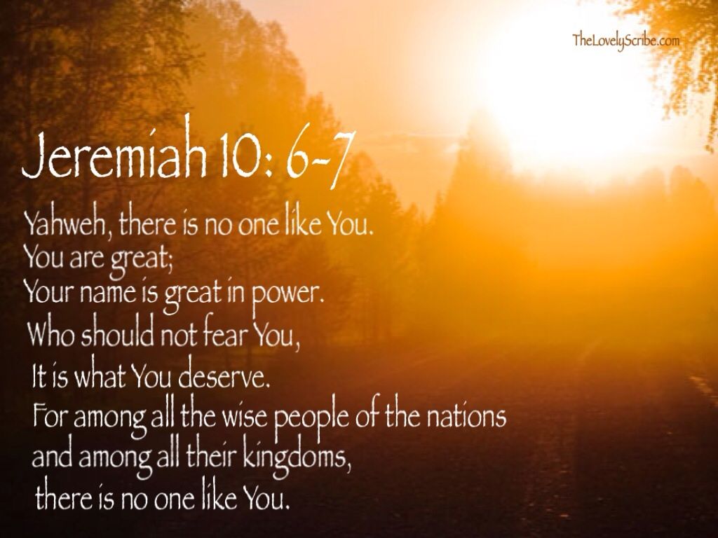1.以色列家啊,要聽耶和華對你們所說的話。2.耶和華如此說:你們不要效法列國的行為,也不要為天象驚惶,因列國為此事驚惶。3.眾民的風俗是虛空的;他們在樹林中用斧子砍伐一棵樹,匠人用手工造成偶像。4.他們用金銀妝飾它,用釘子和錘子釘穩,使它不動搖。5.它好像棕樹,是鏇成的,不能說話,不能行走,必須有人抬著。你們不要怕它;它不能降禍,也無力降福。6.耶和華啊,沒有能比你的!你本為大,有大能大力的名。7.萬國的王啊,誰不敬畏你?敬畏你本是合宜的;因為在列國的智慧人中,雖有政權的尊榮,也不能比你。8.他們盡都是畜類,是愚昧的。偶像的訓誨算甚麼呢?偶像不過是木頭。9.有銀子打成片,是從他施帶來的,並有從烏法來的金子,都是匠人和銀匠的手工,又有藍色紫色料的衣服,都是巧匠的工作。10.惟耶和華是真神,是活神,是永遠的王。他一發怒,大地震動;他一惱恨,列國都擔當不起。11.你們要對他們如此說:不是那創造天地的神,必從地上從天下被除滅!