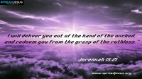 以色列民在罪惡的道路中,逐漸衰弱走向凋零荒涼,遭遇的是極大無比的傷痕痛苦。難道這就是神量給他們在地上的終局!神沒有向他們保持沉默,神仍然繼續透過祂的話語向他們呼籲,說:你們要悔改回轉分別歸向我,我要救贖你脫離強暴人的手。雖然神對百姓所的話是清晰簡明具體且一再重複,但他們似乎就是聽不見也看不懂。在我們看來,以色列民對神話語的偏離與硬心,所遭遇的一切也是咎由自取。而身為他們當中一份子的耶利米,無法置身事外卻仍繼續流淚的為著眾人向神禱告,並從神領受有別於荒涼痛苦的救贖應許。