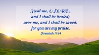 12.我們的聖所是榮耀的寶座,從太初安置在高處。13.耶和華─以色列的盼望啊,凡離棄你的必致蒙羞。耶和華說:離開我的,他們的名字必寫在土裡,因為他們離棄我這活水的泉源14.耶和華啊,求你醫治我,我便痊癒,拯救我,我便得救;因你是我所讚美的15.他們對我說:耶和華的話在哪裡呢?叫這話應驗吧!16.至於我,那跟從你作牧人的職分,我並沒有急忙離棄,也沒有想那災殃的日子;這是你知道的。我口中所出的言語都在你面前。17.不要使我因你驚恐;當災禍的日子,你是我的避難所18.願那些逼迫我的蒙羞,卻不要使我蒙羞;使他們驚惶,卻不要使我驚惶;使災禍的日子臨到他們,以加倍的毀壞毀壞他們。