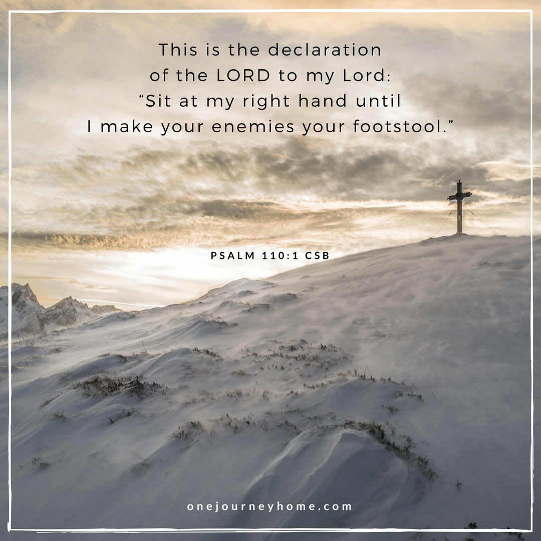 1.耶和華對我主說:你坐在我的右邊,等我使你仇敵作你的腳凳。2.耶和華必使你從錫安伸出能力的杖來;你要在你仇敵中掌權。3.當你掌權的日子,你的民要以聖潔的妝飾為衣,甘心犧牲自己;你的民多如清晨的甘露。4.耶和華起了誓,決不後悔,說:你是照著麥基洗德的等次永遠為祭司。5.在你右邊的主,當他發怒的日子,必打傷列王。6.他要在列邦中刑罰惡人,屍首就遍滿各處;他要在許多國中打破仇敵的頭。7.他要喝路旁的河水,因此必抬起頭來。