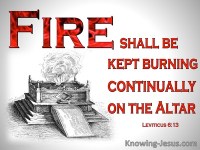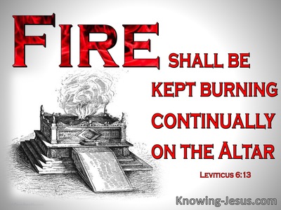 因此,經常現在神面前燒著的燔祭,不只是把可供燃燒的供物往壇上丟就可以。壇上的火更當在內心深處持續的燃燒,讓生命成為獻給神的馨香火祭,把生活當成表達遵神為大,以神為樂的現場,把對神的認識與敬畏深深刻劃在心中,是起初神曉諭摩西吩咐祭司家族,直到如今仍要在我心中做成的工吧。