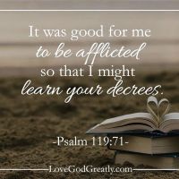 萬事在神手中互相效力,這確實不是一件容易令人服氣的事。除非我活著愈來愈多是憑著信不是憑眼見,才能不被眼前的苦,當下的惡蒙蔽。就如同詩篇作者渴望在神面前可以因著神的話語活著一般,這不是說詩篇作者已經到了超然不為所動的境界,而是不斷的向神求,求神憐憫他,使他不停止對神話語的默想與學習,好像賴以生存的陽光,水與空氣。詩篇作者所禱告的,也應當是我的禱告,他在神面前的心志,也應當是在神面前的眼光和態度。