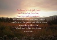 神垂聽禱告,且按著神的方法與時間成就。當神公義審判的臨在,天使個別的吹號,對眾聖徒而言,表示透過禱告在神面前獻上的敬拜、讚美、感謝和祈求,如同馨香是被神所悅納。對眾聖徒以外的受造之物而言,卻表示將面臨三分之一的火燒、變質、毀壞、黑暗和死亡。且住在地上的民,仍將有持續的災難發生。
