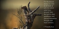 6.然而,敬虔加上知足的心便是大利了;7.因為我們沒有帶甚麼到世上來,也不能帶甚麼去。8.只要有衣有食,就當知足。9.但那些想要發財的人,就陷在迷惑、落在網羅和許多無知有害的私慾裡,叫人沉在敗壞和滅亡中。10.貪財是萬惡之根。有人貪戀錢財,就被引誘離了真道,用許多愁苦把自己刺透了。