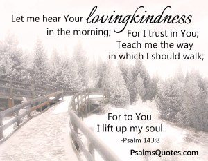 耶和華啊,求祢垂聽我的禱告,憑祢的信實和公義應允我。仇敵逼迫我,將我打倒在地,使我住在幽暗之處,我的靈發昏,我的心悽慘。我追想古時,思想祢的作為,默念祢的工作,我的心渴想祢。耶和華啊,求祢應允我,清晨得聽祢慈愛之言,使我知道當行的路,救我脫離仇敵,指教我遵行祢的旨意,引我到平坦之地,憑祢的公義,將我從患難之地領出來,憑祢的慈愛使我的敵人無聲,因我是祢的僕人。