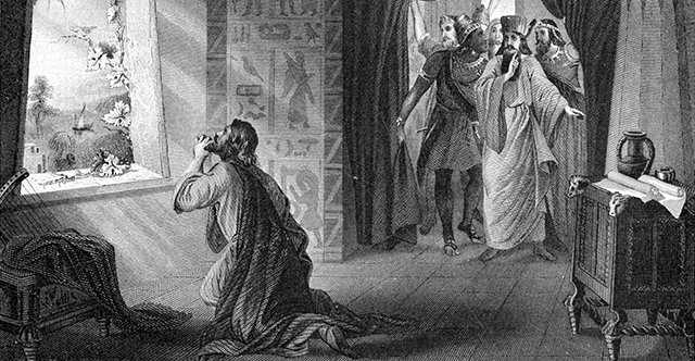 眾臣紛紛聚集向王施壓執行禁令,但以理就被扔在獅子坑中。王終夜無法成眠。次日,王急忙往獅子坑臨近坑邊,哀聲呼叫但以理,你所常事奉的神能救你脫離獅子嗎?但以理對王說:我的神差遣使者,封住獅子的口,因我無辜也沒有行過虧損的事。王就吩咐人將但以理從坑裏繫上來,並把那些控告但以理的人扔在獅子坑中。他們還沒有到坑底,獅子就咬碎了他們的骨頭。那時,大流士王傳旨,要在但以理的神面前戰兢恐懼。因祂是永活施行神蹟奇事的神。