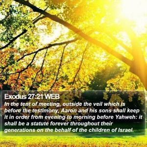 這應許包括,人會過去,世代會交替,但神要百姓與祂同行的心意和引導,並不會因為世代的不同而失敗。要作世世代代永遠的定例,這話早已啟示出,這定例的成就在於神,不在於人。若不是出於神,有誰能夠誇口說,有甚麼樣的功勞,必定可以到永永遠遠的呢?唯有神的話語並祂的作為長存。藉著會幕細緻的建造,藉著經辦聖所事宜的定例。神要屬祂的子民更多的認識祂,更深的信靠祂。曠野環境不可怕,可怕的是不再信靠神。會幕建造不麻煩,麻煩的是不再按著神的吩咐去完成。一樣的,要信靠神,要按著神的話語而行,仍是我們今天必修的功課。主啊,憐憫我,讓祢的話光照我,引導我,在每一個心思和行為裡。