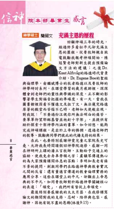 人子來,為要尋找拯救失喪的人.(路加福音19:10)有誰會知道甚至承認自己是失喪的人,且是赤裸裸的呈現出來,在自己也在別人面前?人與生俱來的本能就是遮掩羞恥,不讓羞恥曝光.取而代之冠冕堂皇的包裝,便是眾人眼中的形象.讓人藉此躲在其後,並且使的彼此有了安全感,清新光明的形象,所散發的出的炫光,對自己掩飾了內心,對別人也產生了完美的假象.有誰願意在眾人面前坦露,內心的醜惡甚至邪惡,因為這與整個大環境所要塑造的方向是背道而馳.以至於,當內心邪惡的真實或是出於自願或是出於被迫的被揭露出來,總會掀起一陣陣令人感到震驚的巨浪,問題是,令人震驚的緣故,是因為完美形象的破滅所帶來的衝擊,或是人又再一次被強迫的,需要去面對隱藏在每個人內心深處的邪惡所帶來的矛盾衝突.如果人內心的邪惡沒有出路,終究永遠只能躲在陰暗角落繼續偽裝隱藏.若不是光來到黑暗中,有誰能夠在黑暗中看見光?人子耶穌就是世上的真光,祂來到我們的當中,不但要顯露出人內心最深處的惡,就是與神為仇為敵,且是不能自拔的命運.更是要為我們指出已經為你我所預備,在內心黑暗邪惡之中的出路,就在耶穌被釘十字架,走進黑暗無光,又從死裡復活,不但扭轉了我們原本在黑暗捆鎖中的命運,也把我們從絕望的泥沼拯救出來,成為光明之子,不再依賴外在短暫的形象來包裝自己,也不再為自己在那裏遮遮掩掩辛苦的活著,而是靠賴救贖的應許,如同鬆開緊握的雙手,敞開的門,在認清自己的失喪,對自己的絕望的同時,也有曙光.